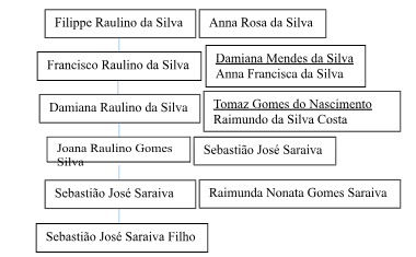 Pois bem, após essa breve introdução ao contexto familiar, sob o aspecto da “raiz”, vem a relação parental de Sebastião José Saraiva Filho com o Capitão Francisco Raulino da Silva.
